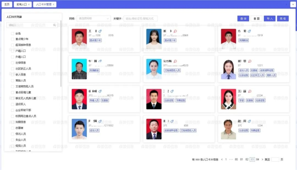政策在调整,业务在变化,治理工作常常需要从庞大的人口中快速定位到特定群体。为此,平台引入了灵活可扩展的N要素标签体系。管理人员可以根据实际工作需要,自定义设置多种属性或状态标签,例如针对特定健康状况、职业类型或生活状况的群体进行标识。借助这套标签系统,能够迅速筛选出目标人群,开展定向服务或管理工作。无论是政策宣传、关怀帮扶还是专项治理,都能更加有的放矢,实现资源优化配置和服务的个性化推送。