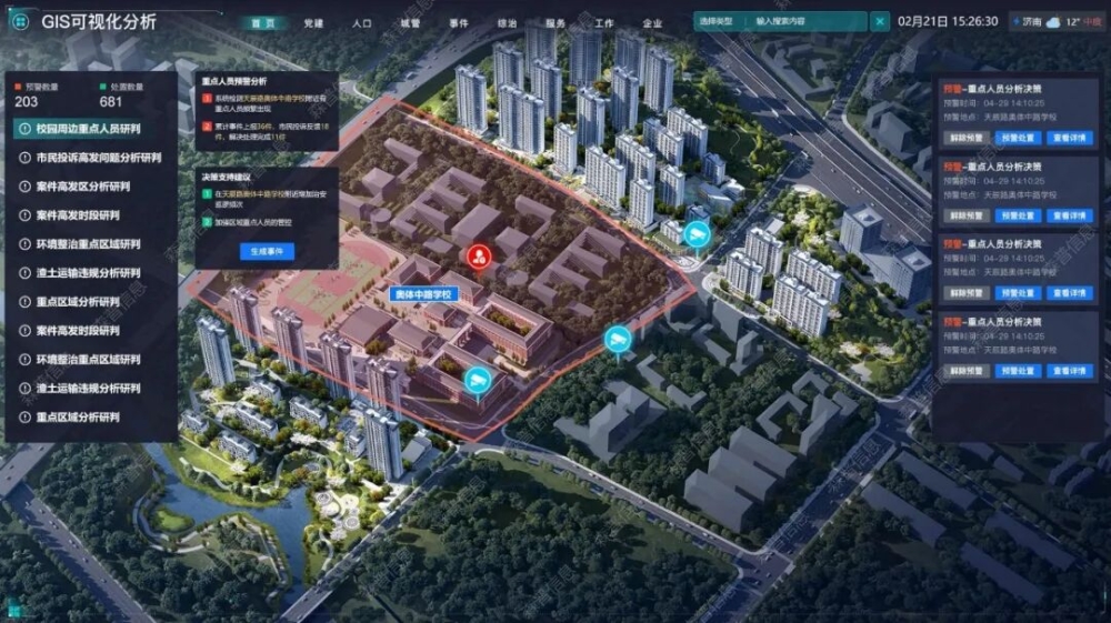 集成来自信访、仲裁、法院、司法、公安等不同职能部门的业务数据,将那些可能涉及多个部门的复杂事件,如信访、仲裁、诉前调解、矛盾纠纷等,一网揽尽,实现跨领域、多源事件的全面汇聚。